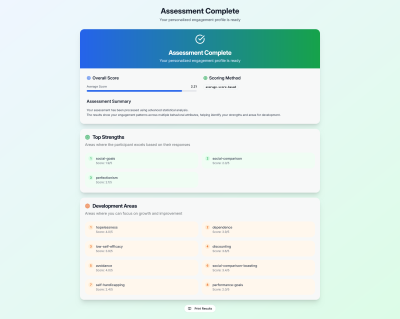 After having taken the survey, the participant will see a summary of their results based on their answers: