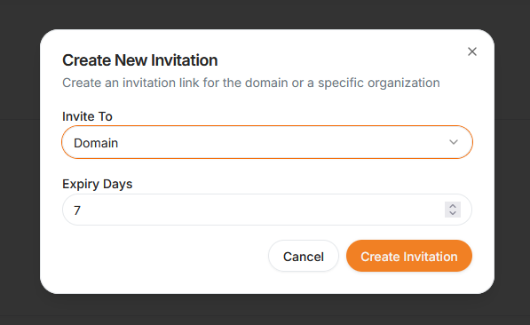 After then by pressing “Create invitation”, you will see a modal where you can select the invitation kind