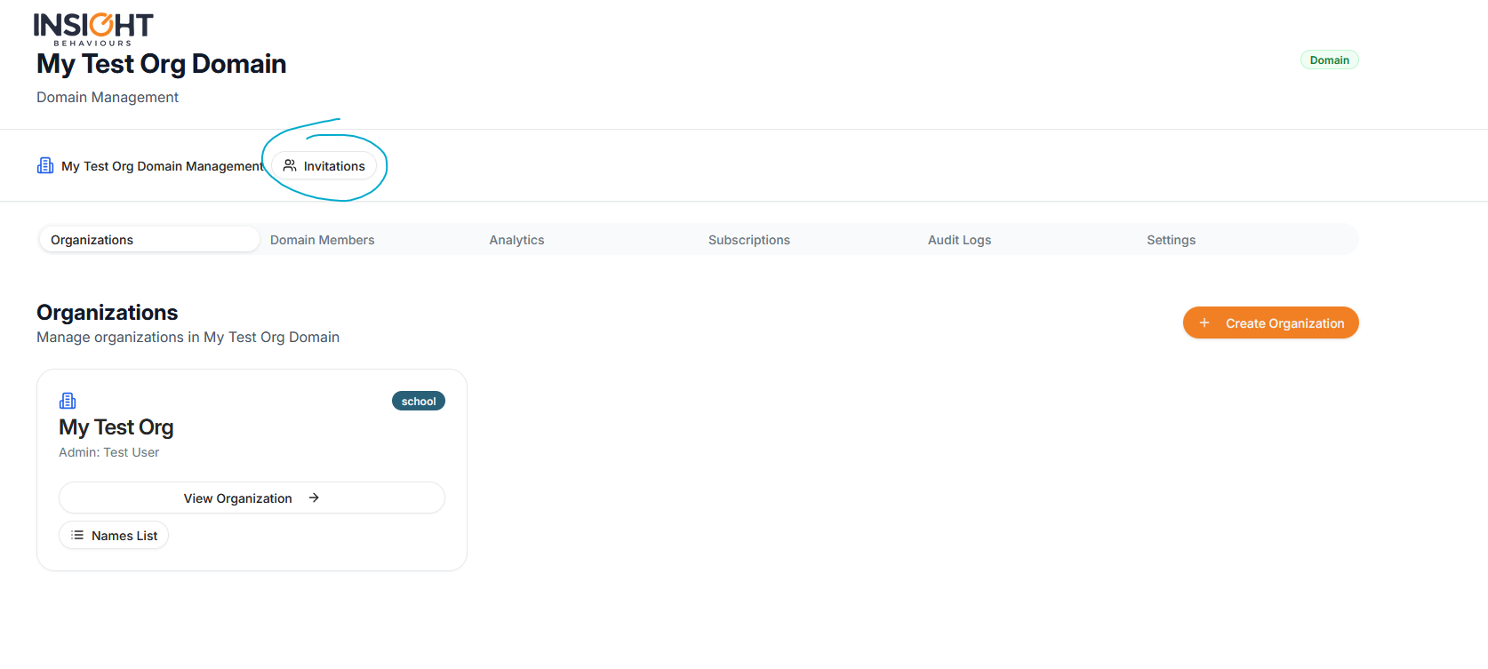 You can invite domain admins, or organization admins, through the “Invitations” screen